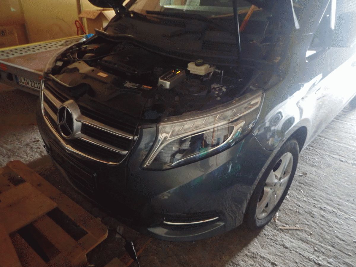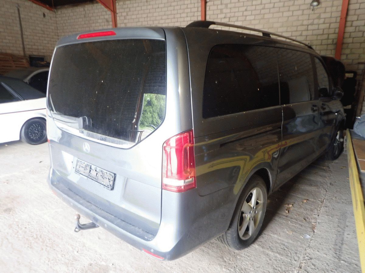 Mercedes Benz V-Klasse, V 250, ehem. Kennzeichen: OL-Z 7766, EZ: 11.08.2017, 140 KW, 2143 ccm, Diesel, Euro 6, Fahrgestellnr.: WDF44781313339935, feste Anhängerkupplung, Einparkhilfe hinten, Stoßstange hinten mehrfach beschädigt, grau, Avantgard-Ausstattung, TÜV 12/25, Langversion, Allrad, Leichtmetallfelgen mit Anfahrschäden, diverse Beulen und Kratzer am gesamten Fahrzeug, Privacy-Verglasung hinten, 6-Sitzer, Rückfahrkamera, Parkhilfe vorne, letzter Ölwechsel bei 131.457 km, Ledersitze, Pilotsitze, Schiebetür rechts und links, Wurzelholzeinlagen am Armaturenbrett und in den Armlehnen auf der zweiten und dritten Sitzreihe, z. T. beschädigt, verkratzt, 161.655 km, Tempomat, Automatik, Schaltwippen, Multifunktionslederlenkrad, Klimaanlage, Fahrstufenauswahl, Navigation, Spurhalte- und Bergabfahrassistent, elektrische Fensterheber vorne und hinten, Sitzheizung vorne, dunkler Dachhimmel, sehr schlechter Pflegezustand, Beule und links Fahrertür, großflächige Kratzer Stoßfänger vorne rechts, Die ZBII liegt nicht vor, wird neu aufgeboten und es ist mit Wartezeiten zu rechnen, 1313/ECY