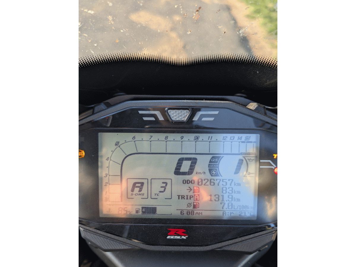 Motorrad Suzuki GSX-R 1000, Quickshifter, EZ: 12.06.2018, 149 KW, 1.000 cm³, Fahrgestellnr.: JS1DM11AZJ2100173, ca. 27.000 km, Typ L3e-A3, TÜV und Service fällig, Reifen abgefahren, Bremsen an Verschleißgrenze, Saisonkennzeichen: WR-R 96 (03-10), unfallfrei, umfallfrei, 7102/AER